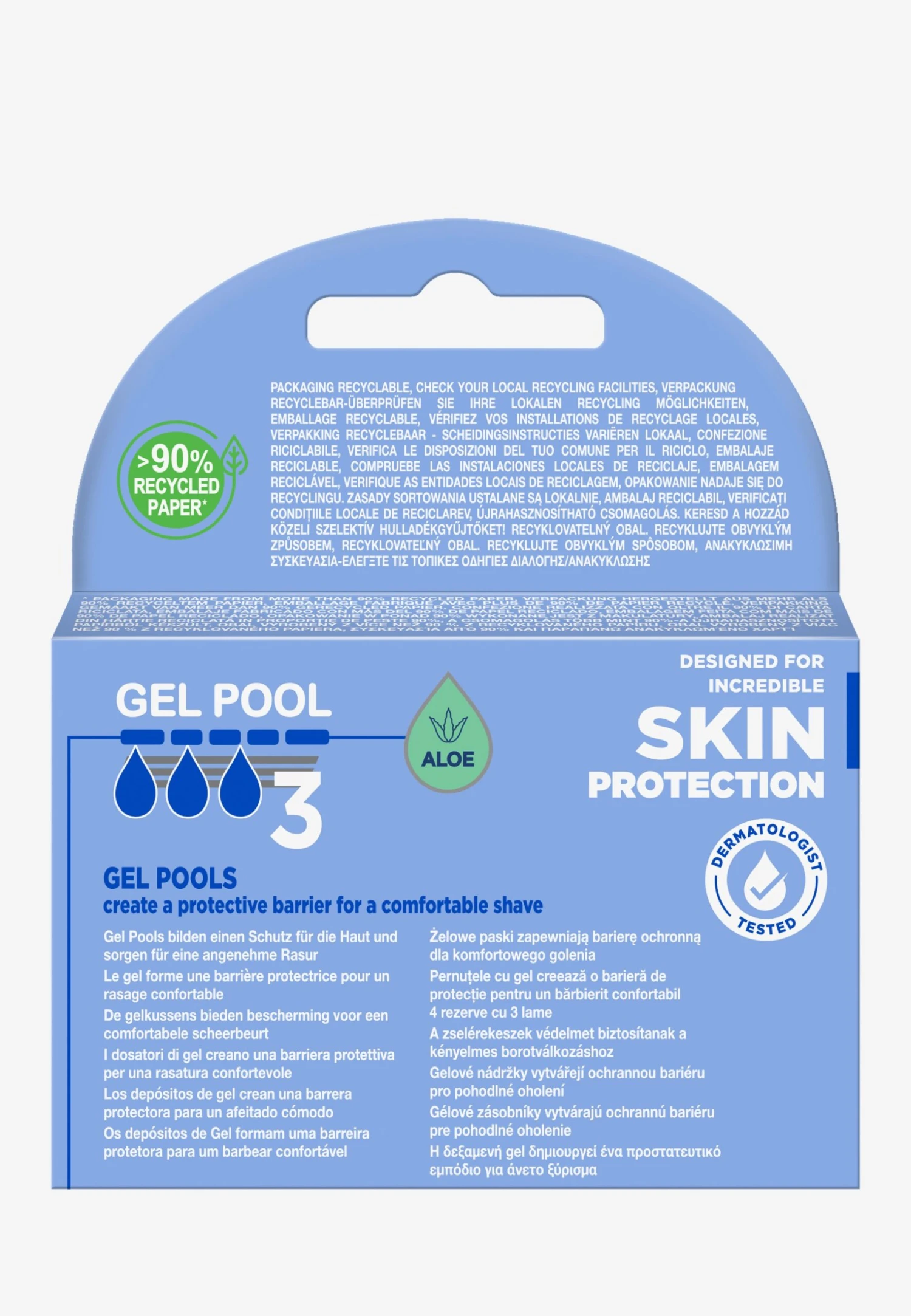 | Precauzioni d'uso | Per prima cosa, applica il gel da barba sulla pelle e massaggia fino all'assorbimento. Prima di raderti attiva il serbatoio di gel sotto l'acqua corrente. Fai sempre scorrere il rasoio sulla pelle con attenzione e mano leggera, senza esercitare pressione. |